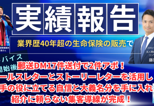 【実績報告】業界歴40年超の生命保険の販売で郵送DM17件送付で2件アポ…