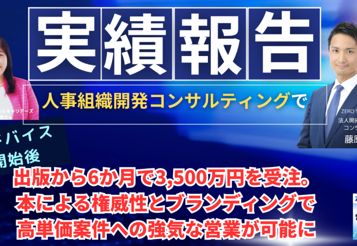 【実績報告】人事組織開発コンサルが出版から6か月で3,500万円を受注。本による権威性とブランディングで高単価案件への強気な営業が可能に。顧客の選別基準も明確化し悩む時間を削減。劇的な生産性向上を実現