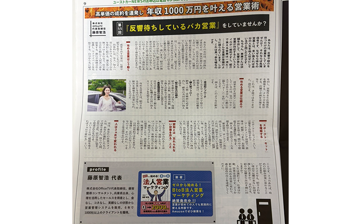2026.01.3 ユーストカーNEWS1月号に掲載されました Tweet Share ユーストカーNEWS1月号に掲載されました。 第55回「反響待ちをしているバカ営業」をしていませんか? ユーストカーNEWS12月号に掲載されました前の記事